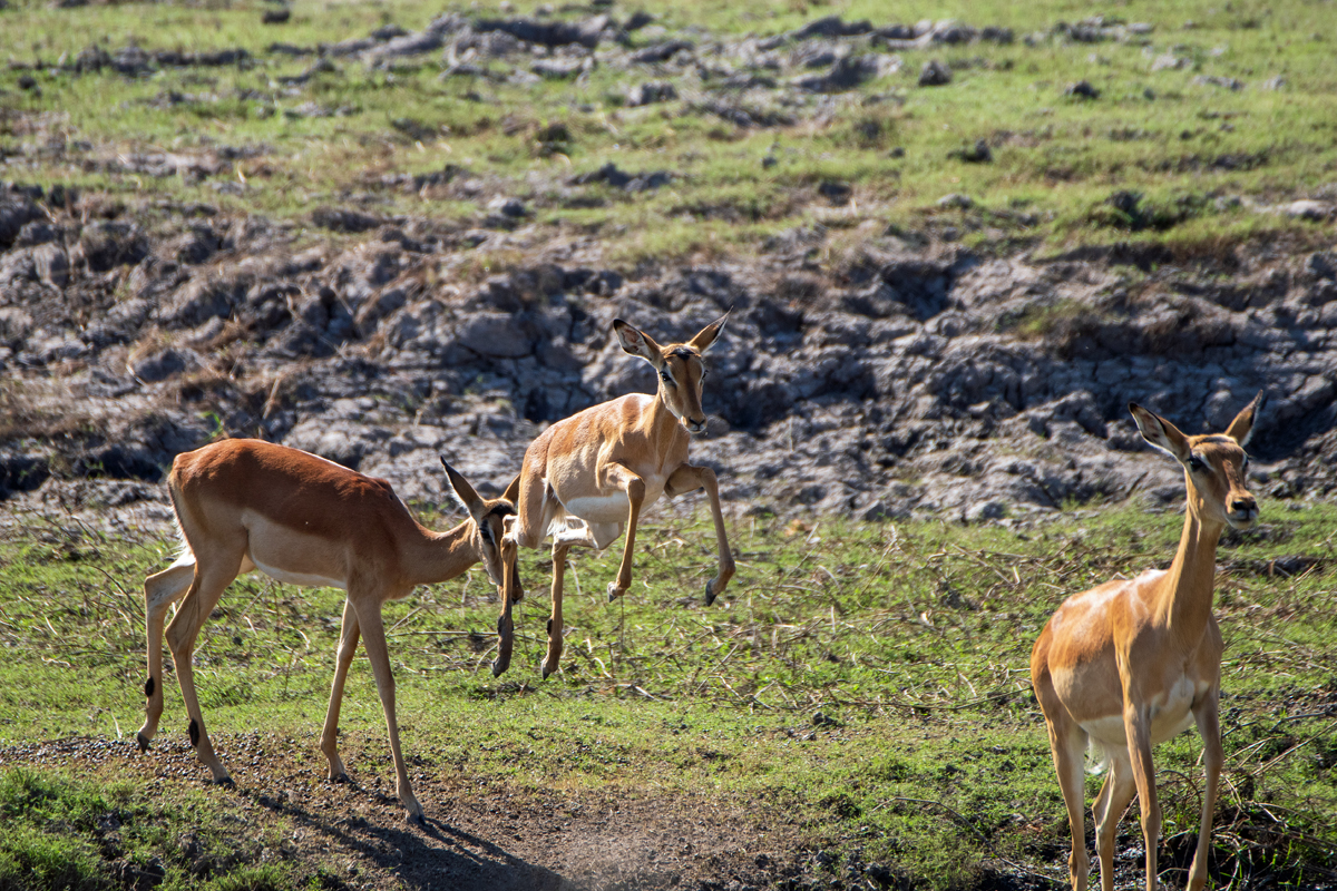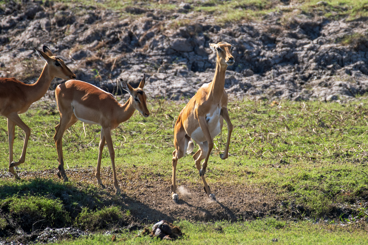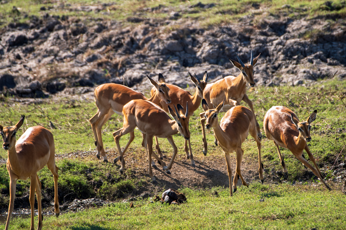 The region is famous for the largest existing herds of elephants on the planet. Up to 150.000 of those graceful animals are staying or wandering through the area and into Namibia, Angola, or Zambia. Fortunately, the constant development of the transnational Kavango Zambezi Transfrontier Conservation Area (KAZA) in Angola, Botswana, Namibia, Zambia, and Zimbabwe with a size of currently 520.000 km² makes this possible – again. In addition, Chobe National Park is one of the most diverse protected areas in Africa and extraordinarily rich in game with lions, leopards, elephants, hippos, giraffes, zebras and various other species of antelope as well as countless bird species.