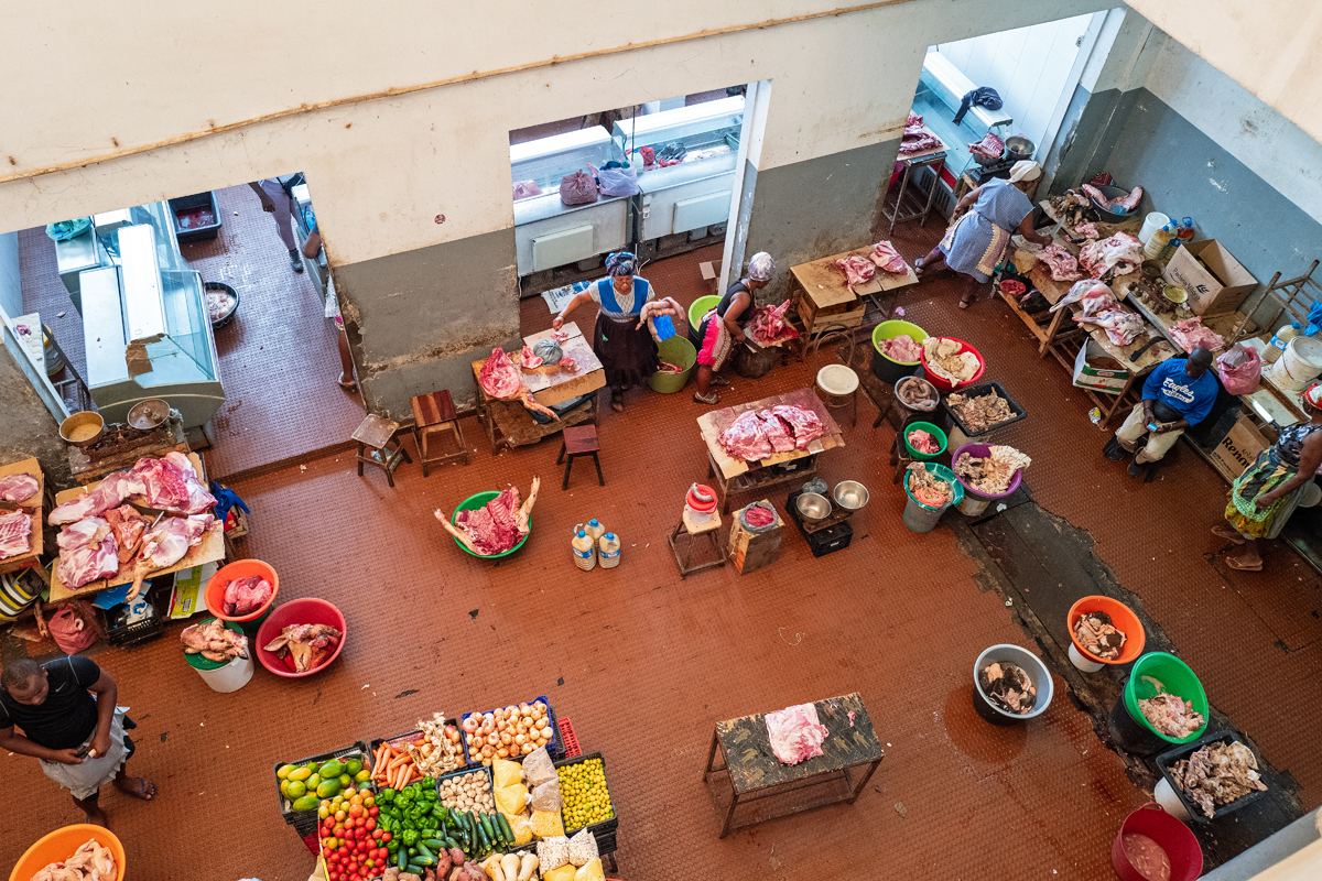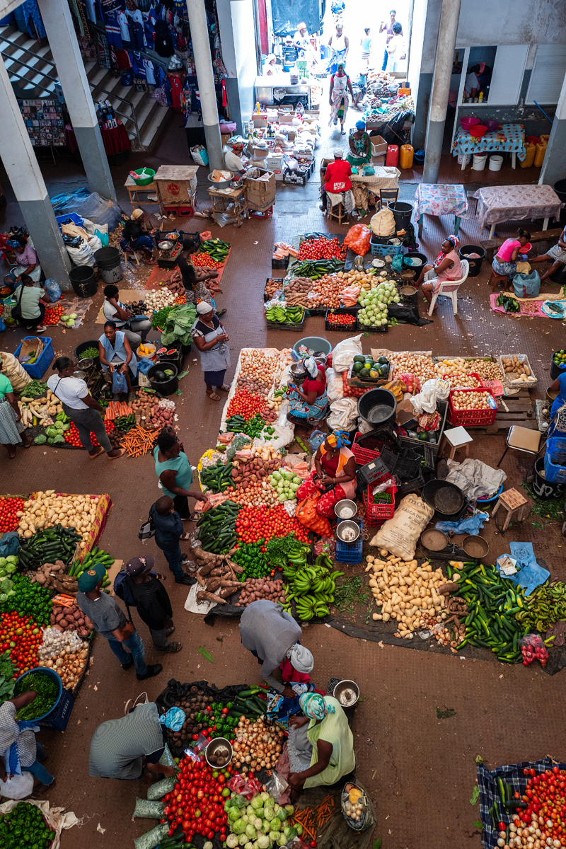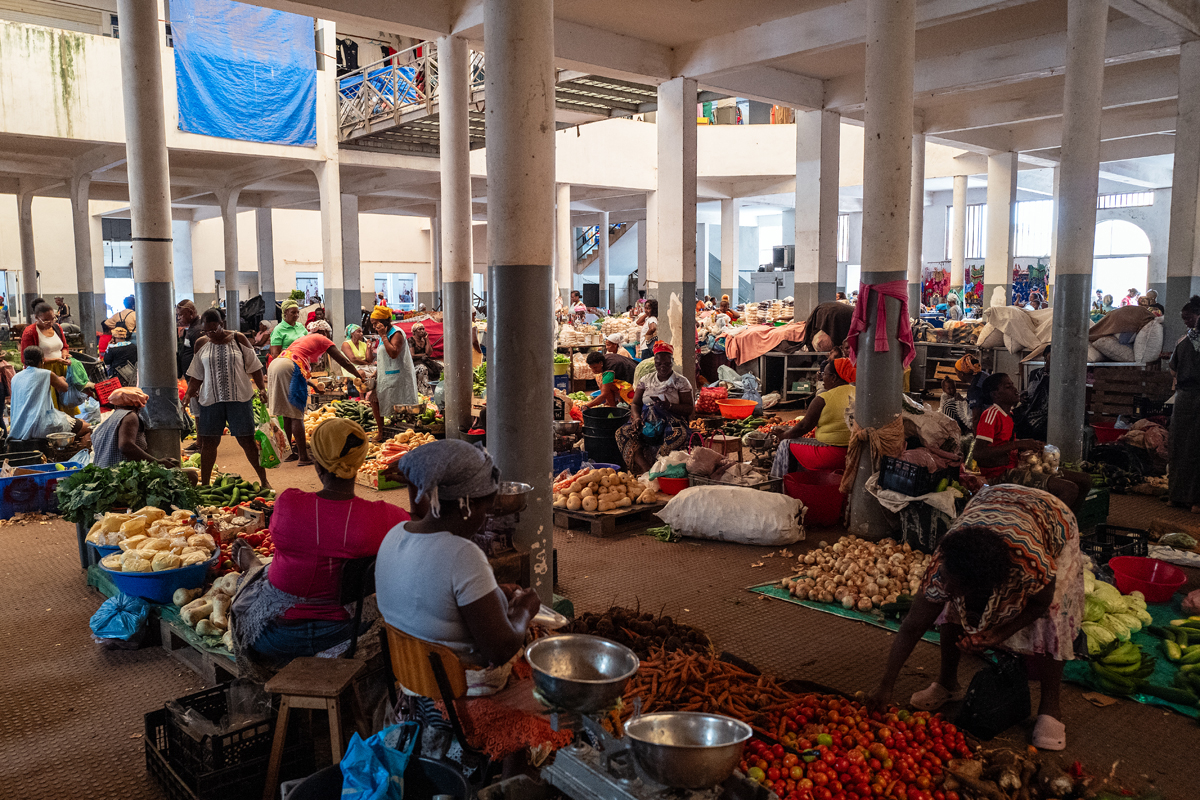 Der Hauptgrund für Touristen, Assomada zu besuchen, ist der Mercado Municipal, der lokale Markt in und um das schöne zweistöckige Marktgebäude, der angeblich „ein echter afrikanischer Markt ist, riesig, farbenfroh, chaotisch“. Und ja, verglichen mit dem gängigen deutschen Wochenmarkt ist der in Assomada tatsächlich riesig, farbenfroh und chaotisch, doch verglichen mit einem beliebigen ostafrikanischen Markt ist er ein wirklich europäischer, klein, gut organisiert und ordentlich mit seinen fein säuberlich aufgereihten Tischen und den Quadraten, wo die Marktfrauen inmitten ihres Gemüses, Obsts oder der Second-Hand-Kleidung sitzen. Nichtsdestotrotz herrscht eine ganz besondere Atmosphäre, vor allem an den Markttagen Mittwoch und Freitag und natürlich, wenn gleichzeitig in der nahen Kirche noch eine große Hochzeit gefeiert wird.