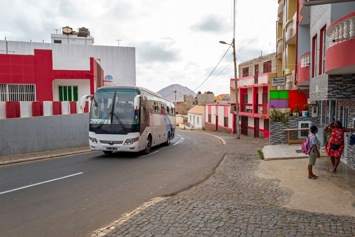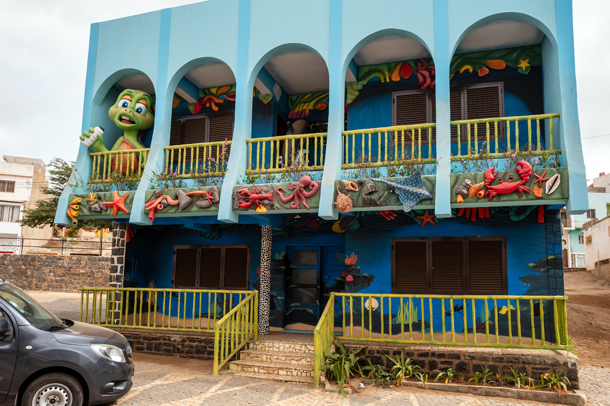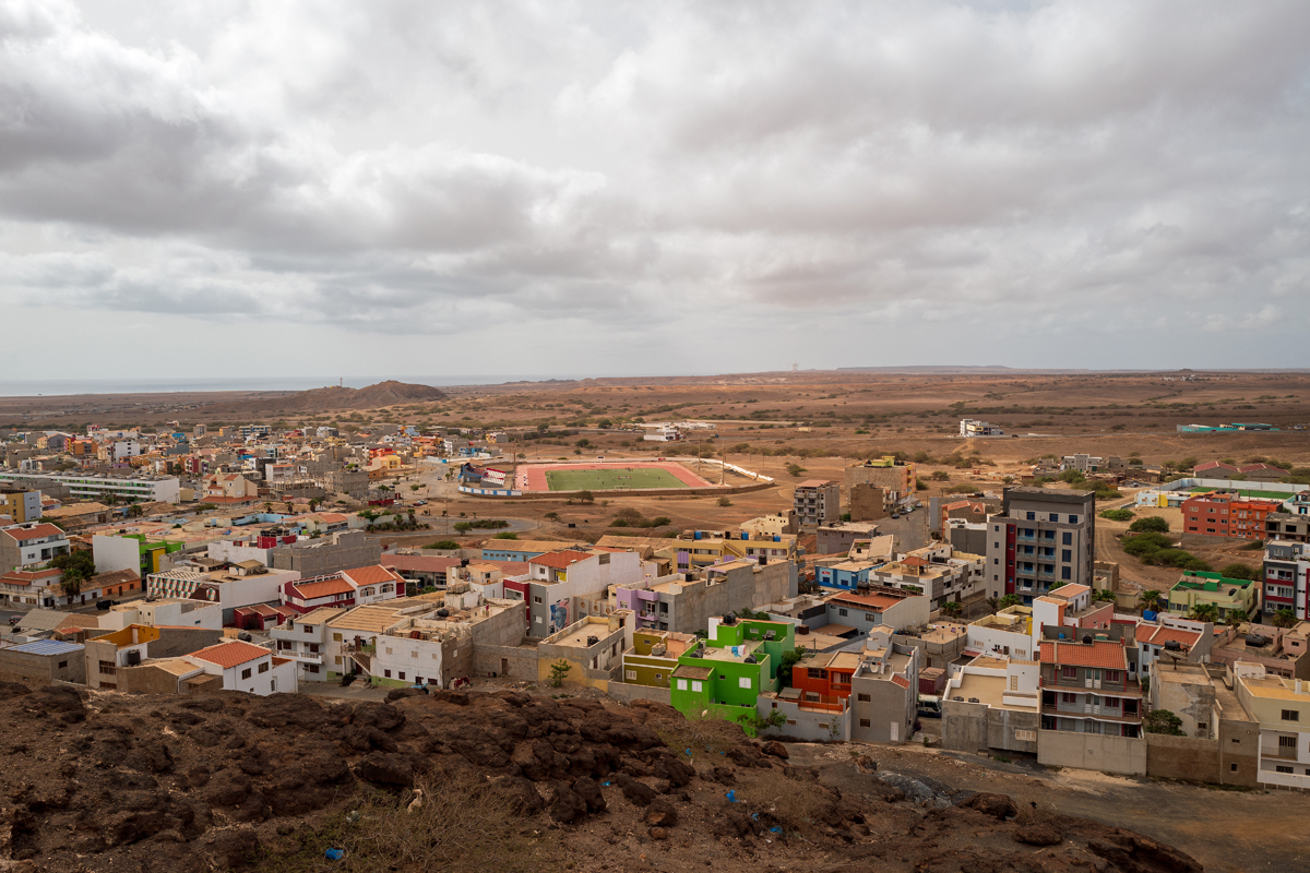 Espargos is a small, lovely desert town in the centre of Sal, right at the International Airport. It is the official capital of the island but of no further interest for tourists – if it wasn´t for the impressive volcanic desert landscape surrounding it. To fully enjoy this stunning scenery, one must walk up 107 metres high Monte Curral in the centre of town, from where you get the best views over the barren island of Sal with its few volcanic cones rising out of the desert wasteland. The many colourful houses in Espargos make a good contrast to the beige desert, and you can see the port of Palmeira only 4 km east of Espargos.