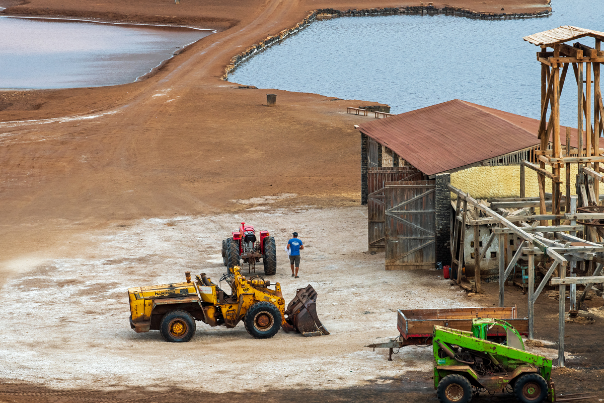 Pedra de Lume is a small settlement on Sal´s northeast coast that has grown around a tiny port. After long years of only being a stopover for turtle hunters, the interest in the island began to rose when Manuel António Martins started the exploitation of the salt ponds in the nearby crater in 1796. Water has been dammed to form small artificial ponds, interconnected with tubes, and in 1804, a tunnel was driven through the crater rim for better access. The salt was mainly sold to Brazil until the market collapsed, but there was some kind of renaissance of salt exploitation in the first half of the 20th century when a French company built a cableway from the crater to the port. Unfortunately, that didn´t last for long, until the thirties to be exact, and today they only produce little amounts for local markets.