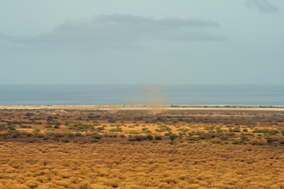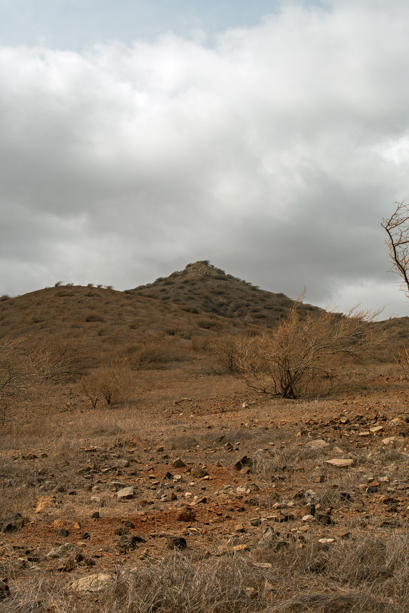 Monte Batalha (294 m) is situated in the hinterland of Calheta close to the west coast of Maio, and it is the second highest mountain on the island. In the wet season, its foothills are used for agriculture, and the higher ranges are good for grazing livestock. On sea-level, there is the forest of Calheta consisting mainly of American acacias. The wood is used for producing charcoal at a cooperative in Morrinho further north. From the summit, one gets superb views over the island, and on a clear day even over neighbouring Santiago.
