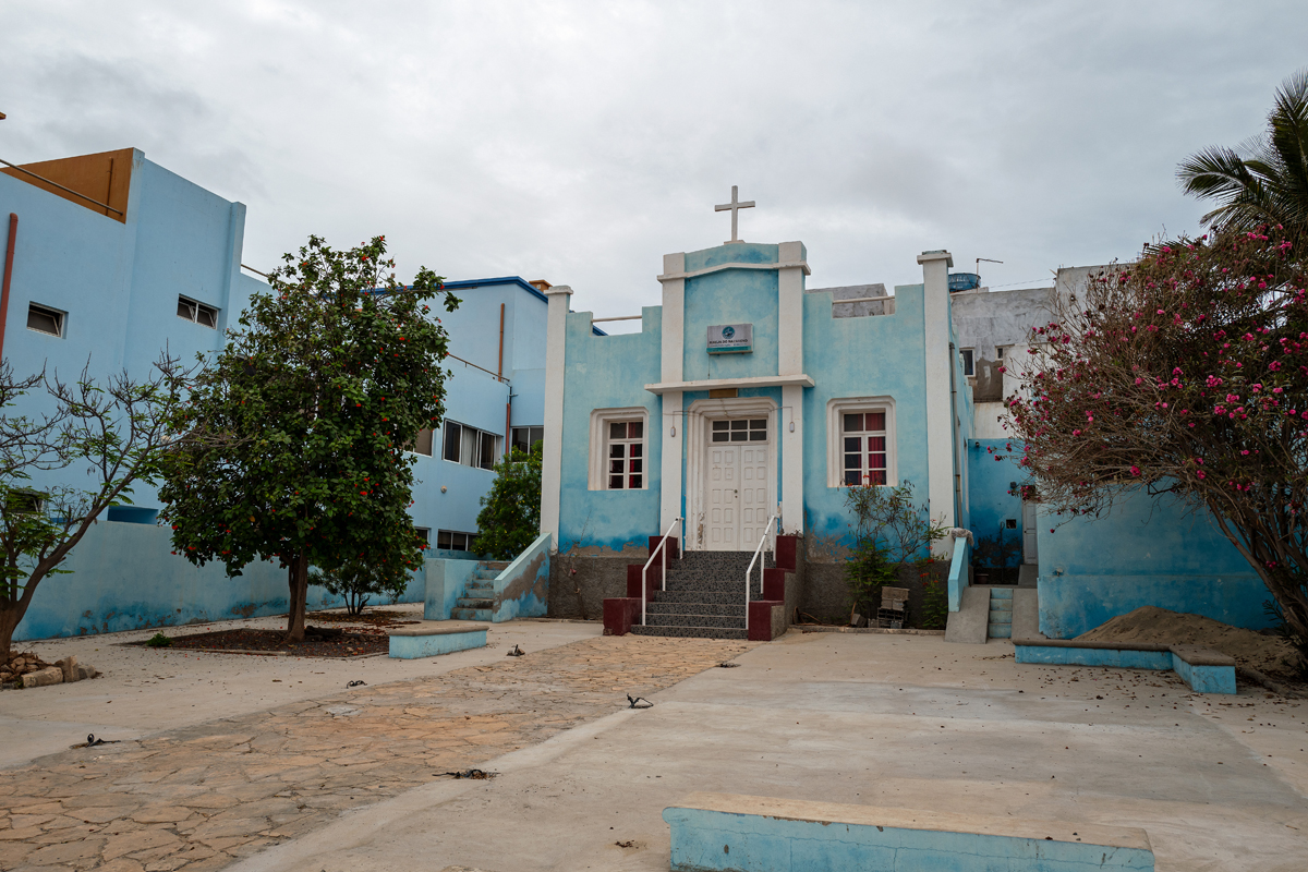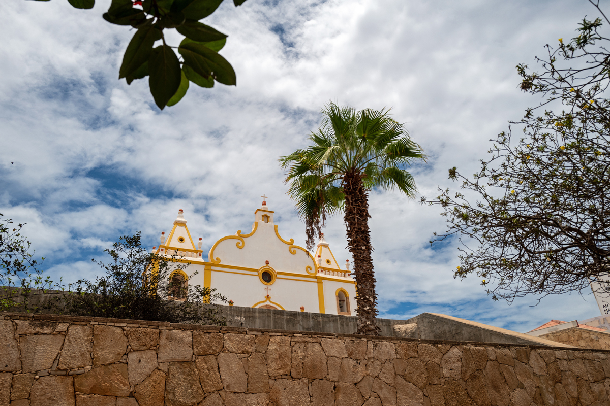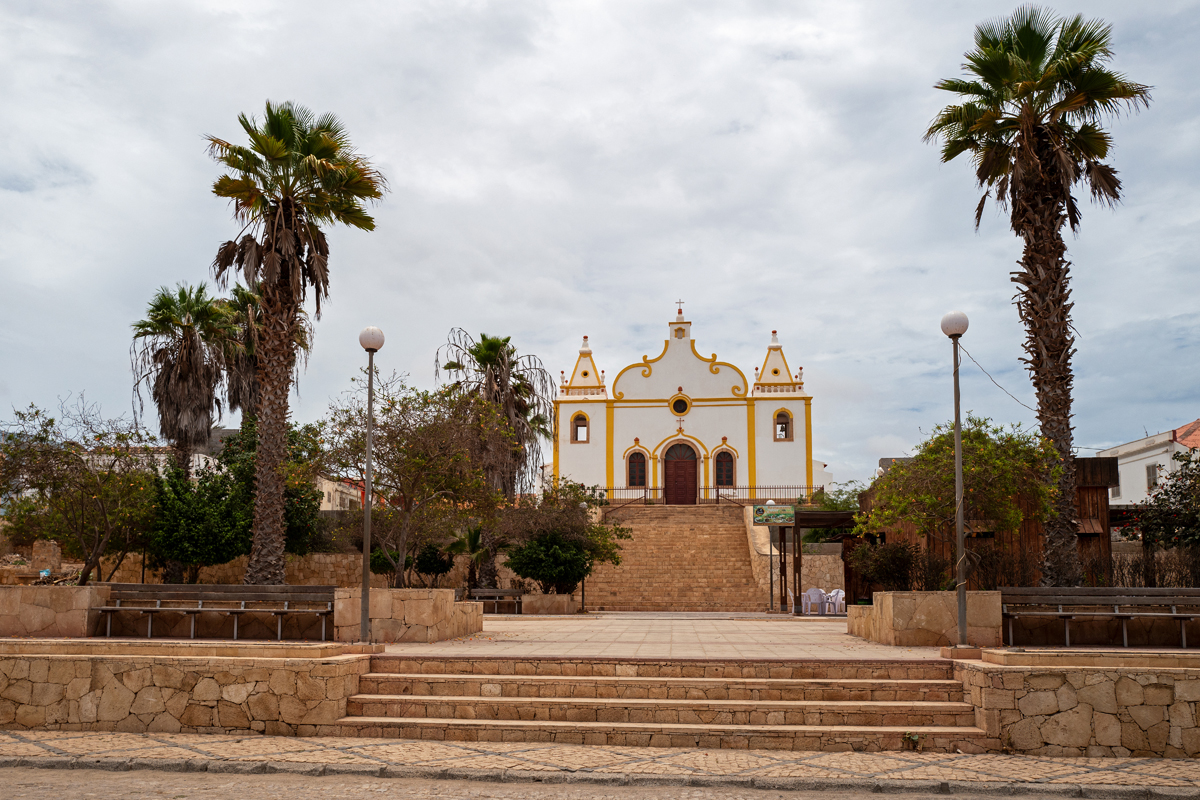 At one of the highest points of town, the church Igreja de Nossa Senhora da Luz is the one landmark of Cidade do Maio. It had been built in 1872 in a Portugese influenced style and to some extent with materials from Portugal. Legend has it that they tried to relocate a picture of Our Lady of The Rosary from the chapel at Monte Penoso to the church, but whenever they tried, it appeared back in the chapel the next morning, so they decided that it could stay in the chapel. The church is surrounded by nice houses of which the one of Antonio Evora is the most impressive, the most beautiful one. The guy had once been the owner of the saltworks north of town and thus the wealthiest man on the island. Today, the yellow Sobrado house is used as the headquarter of the political party PAICV.