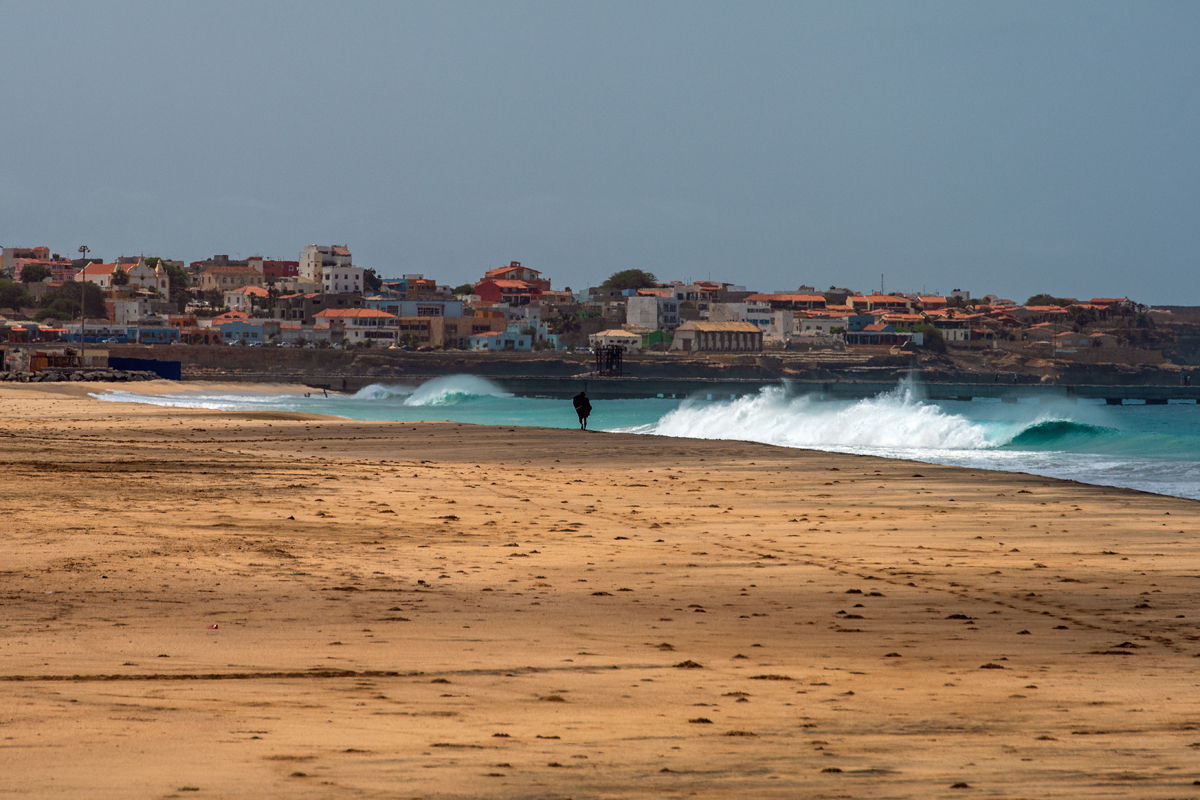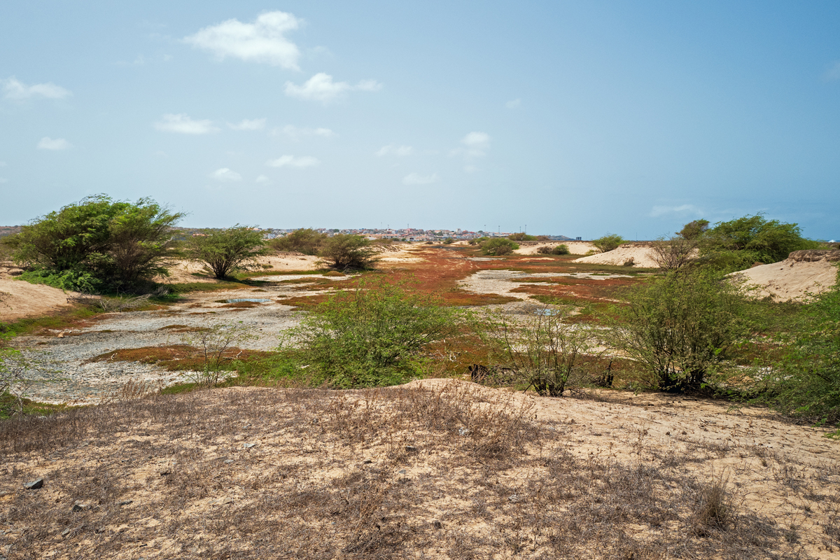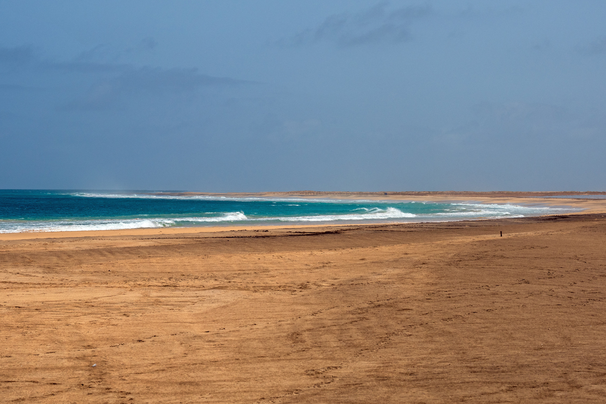 Between Cidade do Maio and Morro, the 5 km long and 1.5 km wide saltpan is the most important feature of the island, because historically it had brought some wealth to Maio, at least for some time. A line of dunes separates the pan from the sea, and it is only at high tides that there is water flowing in. Afterward, the water evaporates in the hot sun, and the salt conglunates, so it can be harvested. The edges of the saltpan are the most important habitat of avifauna on the island, especially wader birds. Beyond lies the rough sea creating a constant flow of forceful, turquoise waves rolling towards the seemingly endless empty beach.