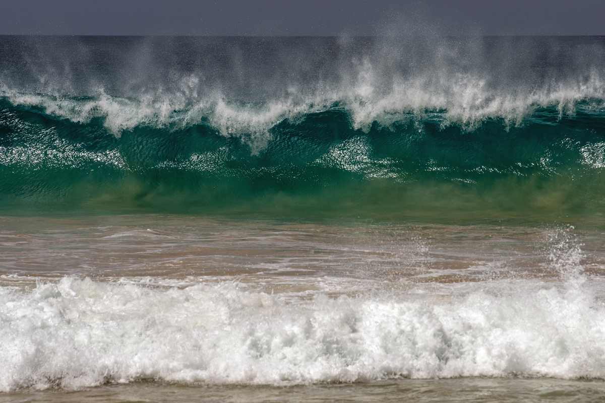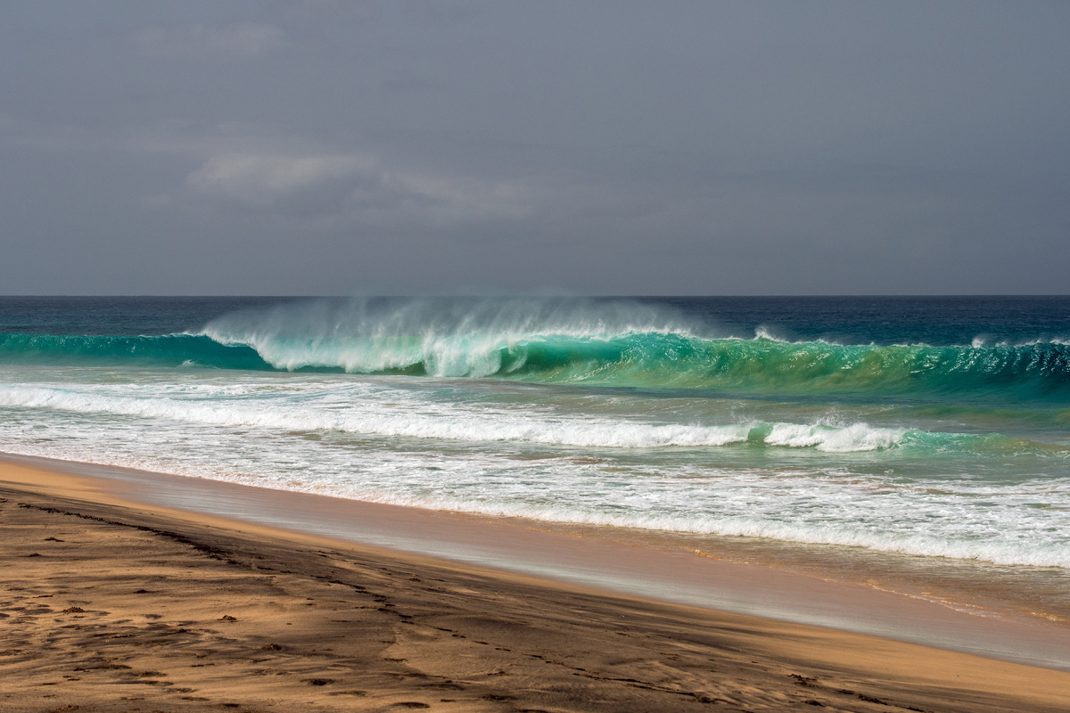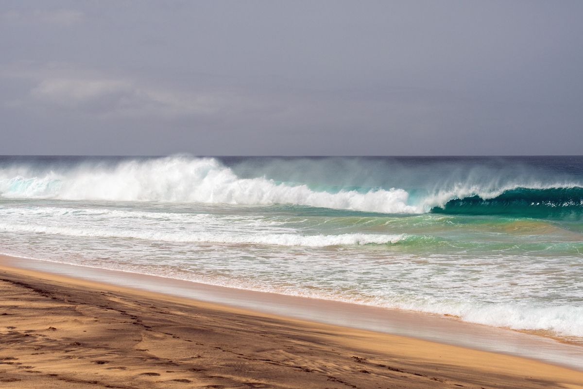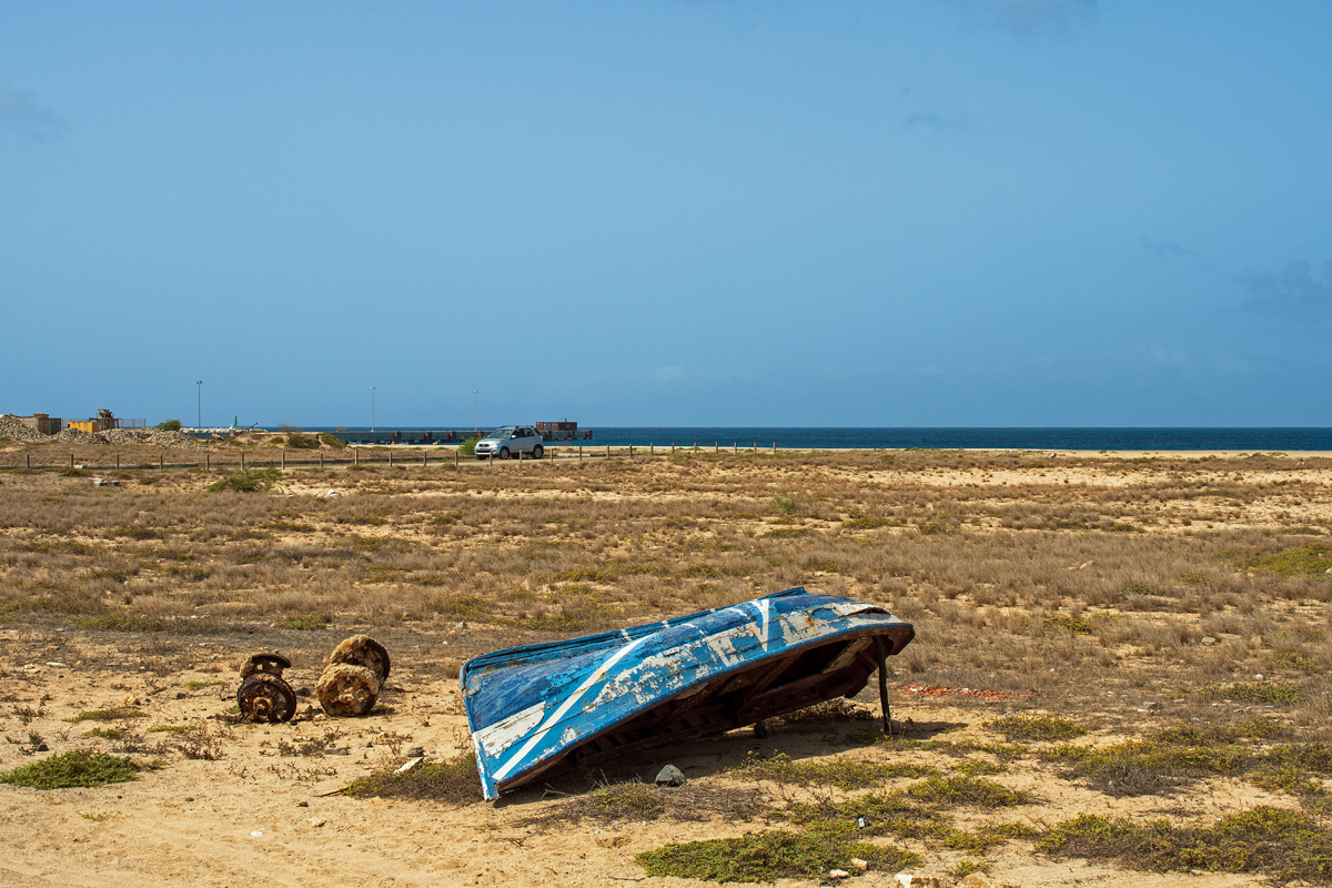 Between Cidade do Maio and Morro, the 5 km long and 1.5 km wide saltpan is the most important feature of the island, because historically it had brought some wealth to Maio, at least for some time. A line of dunes separates the pan from the sea, and it is only at high tides that there is water flowing in. Afterward, the water evaporates in the hot sun, and the salt conglunates, so it can be harvested. The edges of the saltpan are the most important habitat of avifauna on the island, especially wader birds. Beyond lies the rough sea creating a constant flow of forceful, turquoise waves rolling towards the seemingly endless empty beach.
